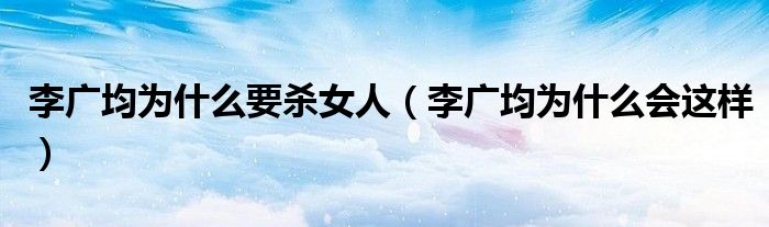 大家好,小安來為大家講解下。李廣均為什么要殺女人,李廣均為什么會這樣很多人還不知道,現在讓我們一起來看看吧!