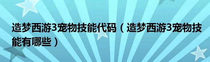 大家好,小安來為大家講解下。造夢西游3寵物技能代碼,造夢西游3寵物技能有哪些很多人還不知道,現在讓我們一起來看看吧!