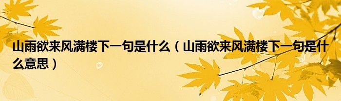 大家好,小安來為大家講解下。山雨欲來風滿樓下一句是什么,山雨欲來風滿樓下一句是什么意思很多人還不知道,現在讓我們一起來看看吧!