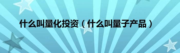 大家好,綜合小編來為大家講解下。什么叫量化投資,什么叫量子產品很多人還不知道,現在讓我們一起來看看吧!