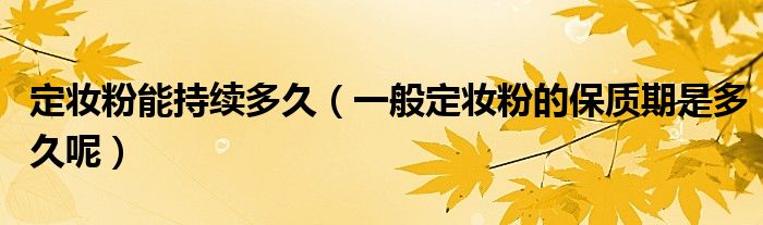 大家好,小安來為大家講解下。定妝粉能持續多久,一般定妝粉的保質期是多久呢很多人還不知道,現在讓我們一起來看看吧!