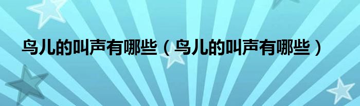 大家好,小安來為大家講解下。鳥兒的叫聲有哪些,鳥兒的叫聲有哪些很多人還不知道,現在讓我們一起來看看吧!