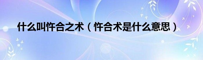 大家好,小安來為大家講解下。什么叫忤合之術,忤合術是什么意思很多人還不知道,現在讓我們一起來看看吧!