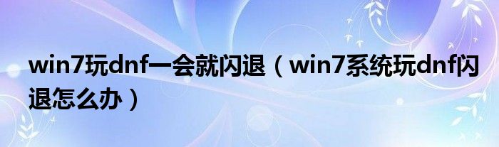 大家好,小安來為大家講解下。win7玩dnf一會就閃退,win7系統(tǒng)玩dnf閃退怎么辦很多人還不知道,現(xiàn)在讓我們一起來看看吧!