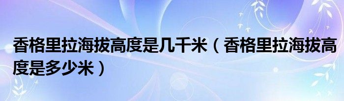 大家好,小安來為大家講解下。香格里拉海拔高度是幾千米,香格里拉海拔高度是多少米很多人還不知道,現(xiàn)在讓我們一起來看看吧!
