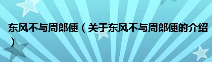 大家好,小安來為大家解答以上的問題。東風不與周郎便,關于東風不與周郎便的介紹很多人還不知道,現在讓我們一起來看看吧!