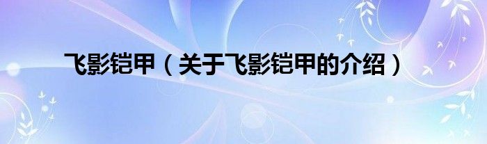 大家好,小安來(lái)為大家解答以上的問(wèn)題。飛影鎧甲,關(guān)于飛影鎧甲的介紹很多人還不知道,現(xiàn)在讓我們一起來(lái)看看吧!