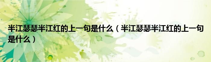 大家好,小安來(lái)為大家講解下。半江瑟瑟半江紅的上一句是什么,半江瑟瑟半江紅的上一句是什么很多人還不知道,現(xiàn)在讓我們一起來(lái)看看吧!