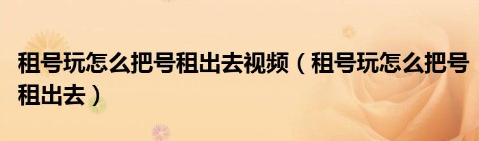 大家好,小安來為大家講解下。租號玩怎么把號租出去視頻,租號玩怎么把號租出去很多人還不知道,現在讓我們一起來看看吧!
