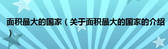 大家好,小安來為大家解答以上的問題。面積最大的國家,關于面積最大的國家的介紹很多人還不知道,現在讓我們一起來看看吧!