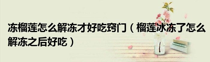 大家好,小安來為大家講解下。凍榴蓮怎么解凍才好吃竅門,榴蓮冰凍了怎么解凍之后好吃很多人還不知道,現(xiàn)在讓我們一起來看看吧!