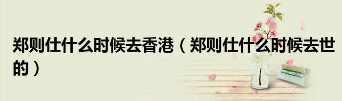 大家好,小安來為大家講解下。鄭則仕什么時(shí)候去香港,鄭則仕什么時(shí)候去世的很多人還不知道,現(xiàn)在讓我們一起來看看吧!