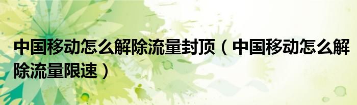 大家好,小安來為大家講解下。中國移動怎么解除流量封頂,中國移動怎么解除流量限速很多人還不知道,現(xiàn)在讓我們一起來看看吧!
