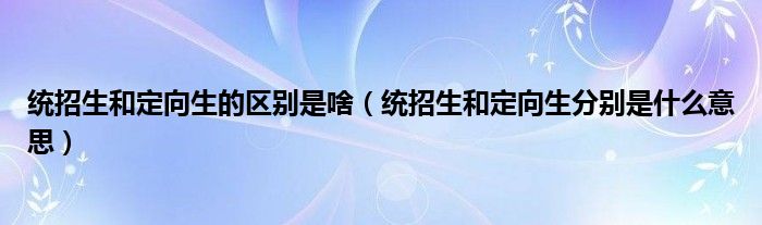 大家好,小安來為大家講解下。統招生和定向生的區別是啥,統招生和定向生分別是什么意思很多人還不知道,現在讓我們一起來看看吧!