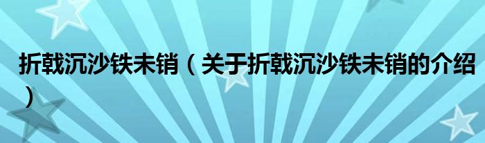 大家好,小安來為大家解答以上的問題。折戟沉沙鐵未銷,關于折戟沉沙鐵未銷的介紹很多人還不知道,現在讓我們一起來看看吧!