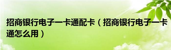 大家好,小安來為大家講解下。招商銀行電子一卡通配卡,招商銀行電子一卡通怎么用很多人還不知道,現在讓我們一起來看看吧!