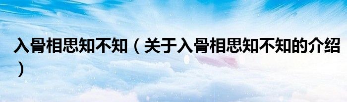 大家好,小安來為大家解答以上的問題。入骨相思知不知,關于入骨相思知不知的介紹很多人還不知道,現在讓我們一起來看看吧!