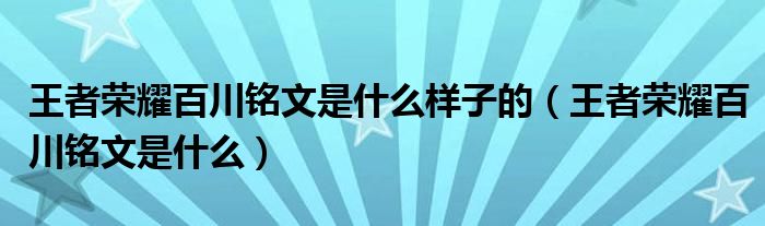 大家好,小安來為大家講解下。王者榮耀百川銘文是什么樣子的,王者榮耀百川銘文是什么很多人還不知道,現在讓我們一起來看看吧!