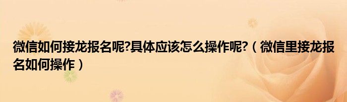 大家好,小安來為大家講解下。微信如何接龍報名呢?具體應該怎么操作呢?,微信里接龍報名如何操作很多人還不知道,現在讓我們一起來看看吧!