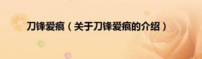 大家好,小安來為大家解答以上的問題。刀鋒愛痕,關(guān)于刀鋒愛痕的介紹很多人還不知道,現(xiàn)在讓我們一起來看看吧!