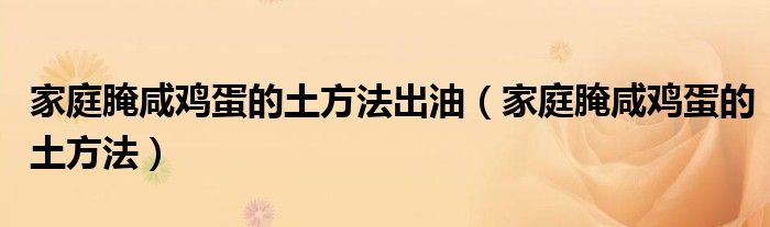 大家好,小安來為大家講解下。家庭腌咸雞蛋的土方法出油,家庭腌咸雞蛋的土方法很多人還不知道,現在讓我們一起來看看吧!