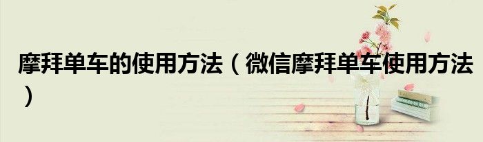大家好,小安來為大家講解下。摩拜單車的使用方法,微信摩拜單車使用方法很多人還不知道,現(xiàn)在讓我們一起來看看吧!