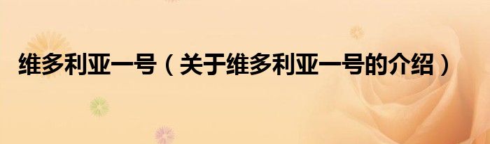 大家好,小安來為大家解答以上的問題。維多利亞一號,關于維多利亞一號的介紹很多人還不知道,現在讓我們一起來看看吧!