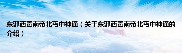 大家好,小安來為大家解答以上的問題。東邪西毒南帝北丐中神通,關(guān)于東邪西毒南帝北丐中神通的介紹很多人還不知道,現(xiàn)在讓我們一起來看看吧!