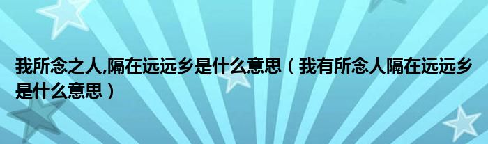 大家好,小安來為大家講解下。我所念之人,隔在遠遠鄉是什么意思,我有所念人隔在遠遠鄉是什么意思很多人還不知道,現在讓我們一起來看看吧!