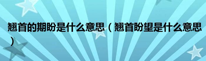 大家好,小安來為大家講解下。翹首的期盼是什么意思,翹首盼望是什么意思很多人還不知道,現在讓我們一起來看看吧!