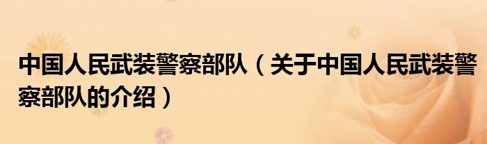 1、中國人民武裝警察部隊,成立于1983年4月5日,前身是中國人民公安中央縱隊,始建于1949年8月。
