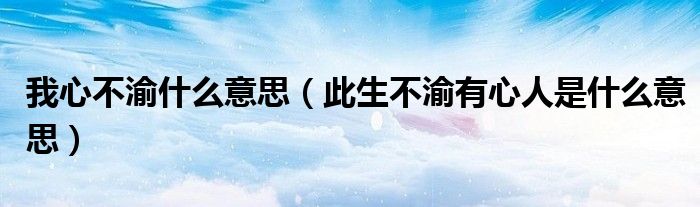 大家好,小安來為大家講解下。我心不渝什么意思,此生不渝有心人是什么意思很多人還不知道,現在讓我們一起來看看吧!
