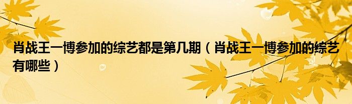 大家好,小安來(lái)為大家講解下。肖戰(zhàn)王一博參加的綜藝都是第幾期,肖戰(zhàn)王一博參加的綜藝有哪些很多人還不知道,現(xiàn)在讓我們一起來(lái)看看吧!