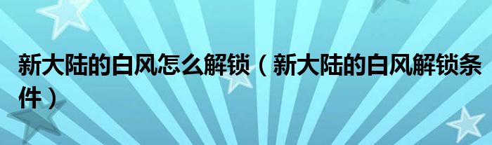 大家好,小安來為大家講解下。新大陸的白風(fēng)怎么解鎖,新大陸的白風(fēng)解鎖條件很多人還不知道,現(xiàn)在讓我們一起來看看吧!