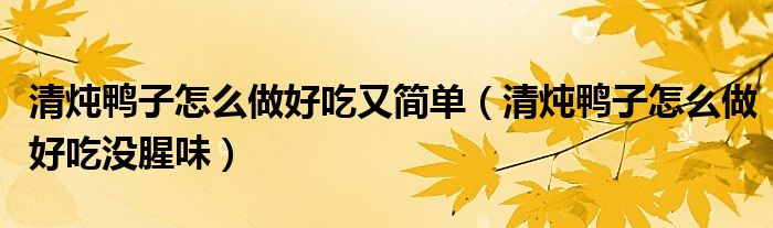 大家好,小安來為大家講解下。清燉鴨子怎么做好吃又簡單,清燉鴨子怎么做好吃沒腥味很多人還不知道,現在讓我們一起來看看吧!