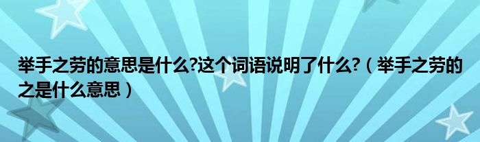 大家好,小安來為大家講解下。舉手之勞的意思是什么?這個詞語說明了什么?,舉手之勞的之是什么意思很多人還不知道,現在讓我們一起來看看吧!