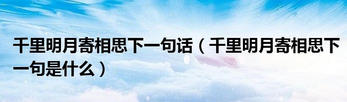 大家好,小安來為大家講解下。千里明月寄相思下一句話,千里明月寄相思下一句是什么很多人還不知道,現在讓我們一起來看看吧!