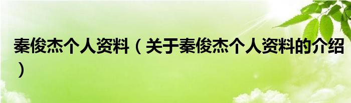 大家好,小安來為大家解答以上的問題。秦俊杰個人資料,關(guān)于秦俊杰個人資料的介紹很多人還不知道,現(xiàn)在讓我們一起來看看吧!