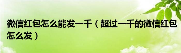 大家好,小安來(lái)為大家講解下。微信紅包怎么能發(fā)一千,超過(guò)一千的微信紅包怎么發(fā)很多人還不知道,現(xiàn)在讓我們一起來(lái)看看吧!