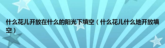大家好,小安來為大家講解下。什么花兒開放在什么的陽光下填空,什么花兒什么地開放填空很多人還不知道,現在讓我們一起來看看吧!