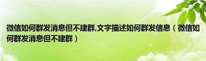 大家好,小安來為大家講解下。微信如何群發(fā)消息但不建群,文字描述如何群發(fā)信息,微信如何群發(fā)消息但不建群很多人還不知道,現(xiàn)在讓我們一起來看看吧!