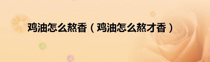 大家好,小安來為大家講解下。雞油怎么熬香,雞油怎么熬才香很多人還不知道,現在讓我們一起來看看吧!