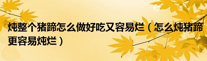 大家好,小安來為大家講解下。燉整個豬蹄怎么做好吃又容易爛,怎么燉豬蹄更容易燉爛很多人還不知道,現在讓我們一起來看看吧!