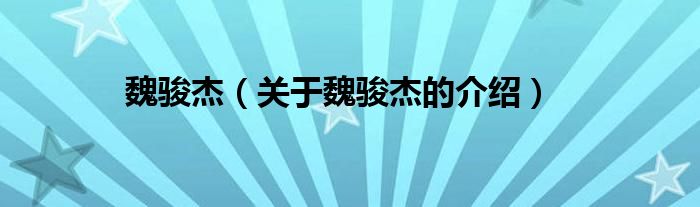 大家好,小安來為大家解答以上的問題。魏駿杰,關于魏駿杰的介紹很多人還不知道,現在讓我們一起來看看吧!
