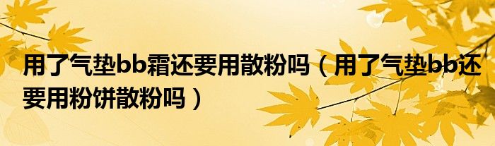 大家好,小安來為大家講解下。用了氣墊bb霜還要用散粉嗎,用了氣墊bb還要用粉餅散粉嗎很多人還不知道,現(xiàn)在讓我們一起來看看吧!