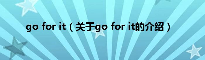 大家好,小安來為大家解答以上的問題。go for it,關(guān)于go for it的介紹很多人還不知道,現(xiàn)在讓我們一起來看看吧!