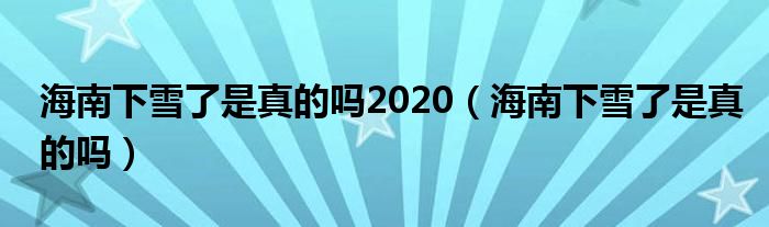 大家好,小安來為大家講解下。海南下雪了是真的嗎2020,海南下雪了是真的嗎很多人還不知道,現在讓我們一起來看看吧!
