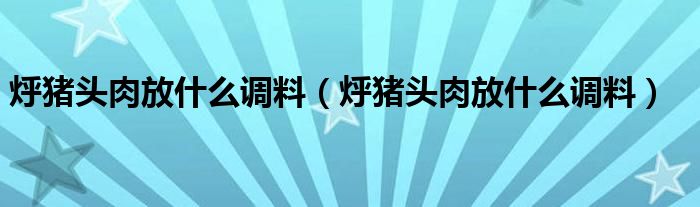大家好,小安來為大家講解下。烀豬頭肉放什么調料,烀豬頭肉放什么調料很多人還不知道,現在讓我們一起來看看吧!