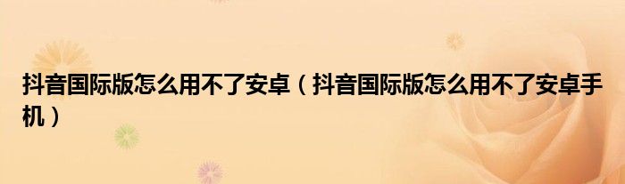 大家好,小安來為大家講解下。抖音國際版怎么用不了安卓,抖音國際版怎么用不了安卓手機很多人還不知道,現在讓我們一起來看看吧!