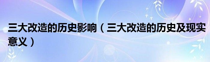 大家好,小安來為大家講解下。三大改造的歷史影響,三大改造的歷史及現實意義很多人還不知道,現在讓我們一起來看看吧!